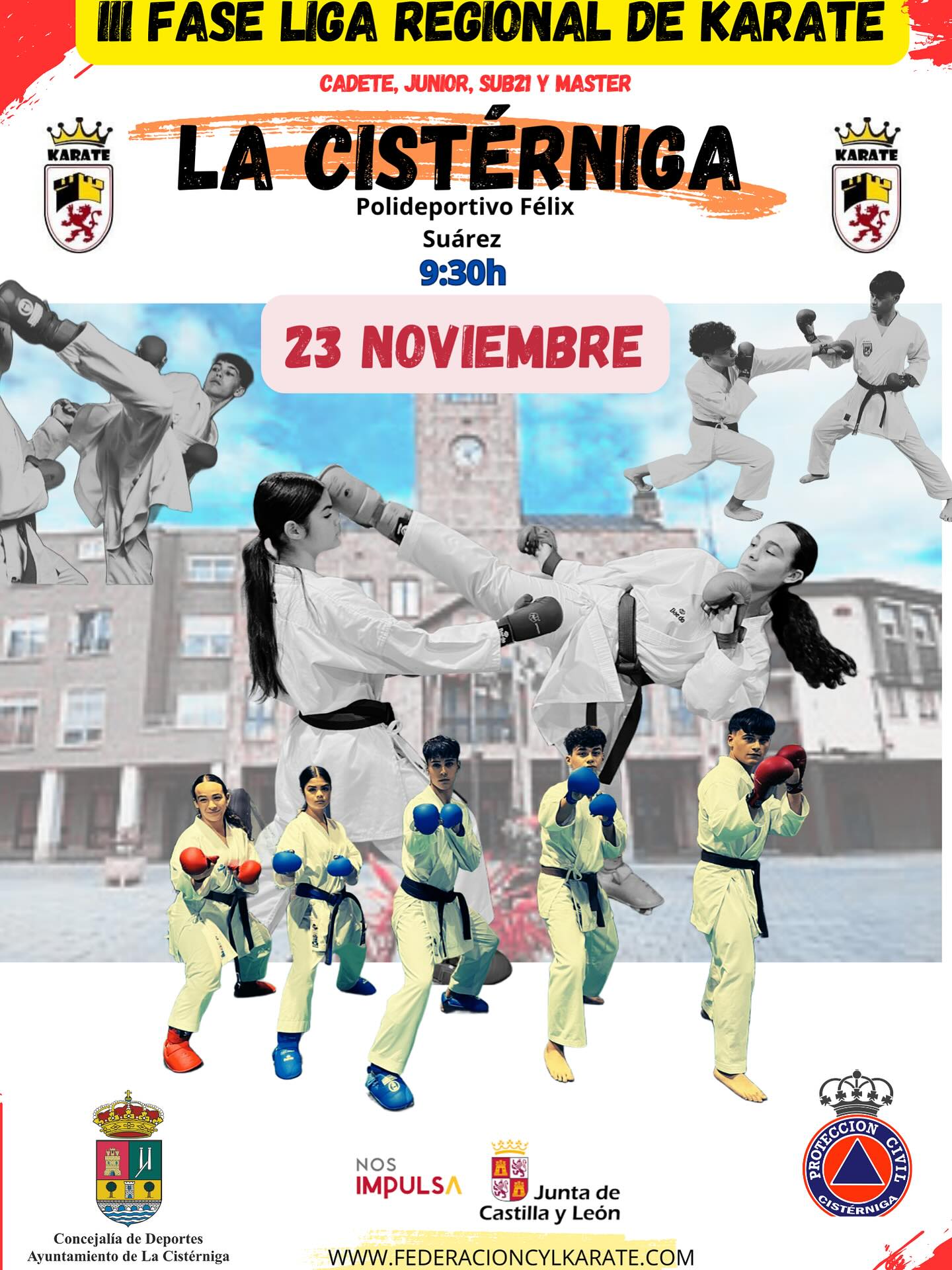 La Federación de Karate y D. A. de Castilla y León, convoca la III Fase de la Liga Regional cadete, junior, sub21 y máster 2025.