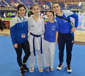 El domingo era el turno de nuestras féminas. Sara Rebolledo, madrugaba para participar en la modalidad de kata categoría juvenil y realizó 3 magníficos encuentros. También compitió en kumite -52kg, superando su primer combate y sucumbiendo en el segundo. Ainhoa Santos Molina (kumite infantil -42kg), superó sus 2 primeros encuentros, cedió en el de cuartos de final, con la competidora que, a la postre llegaría a la final de la categoría, lo que le dio opciones a la palentina de seguir luchando por el tercer puesto. Ainhoa, tenia por delante 2 encuentros más para poder colgarse el metal, los cuales superó por 3-1 y 6-2 para así, colgarse una brillante medalla de bronce.